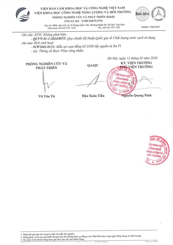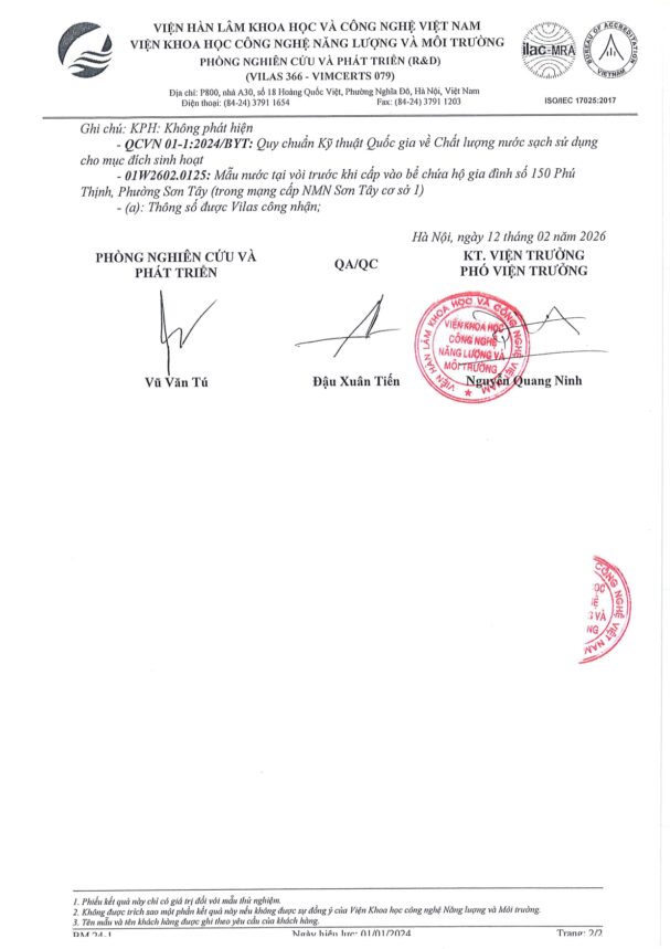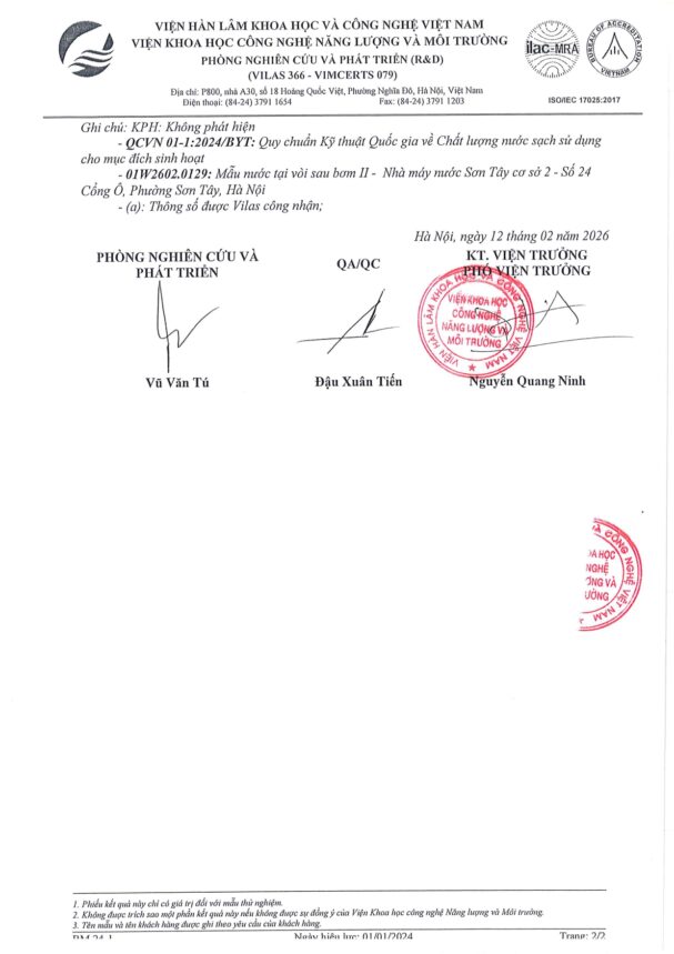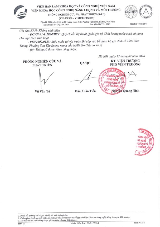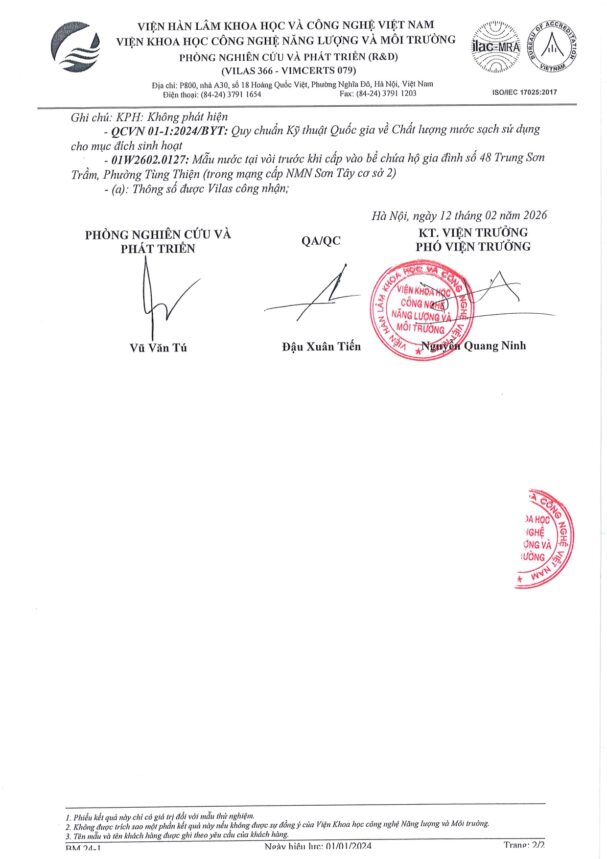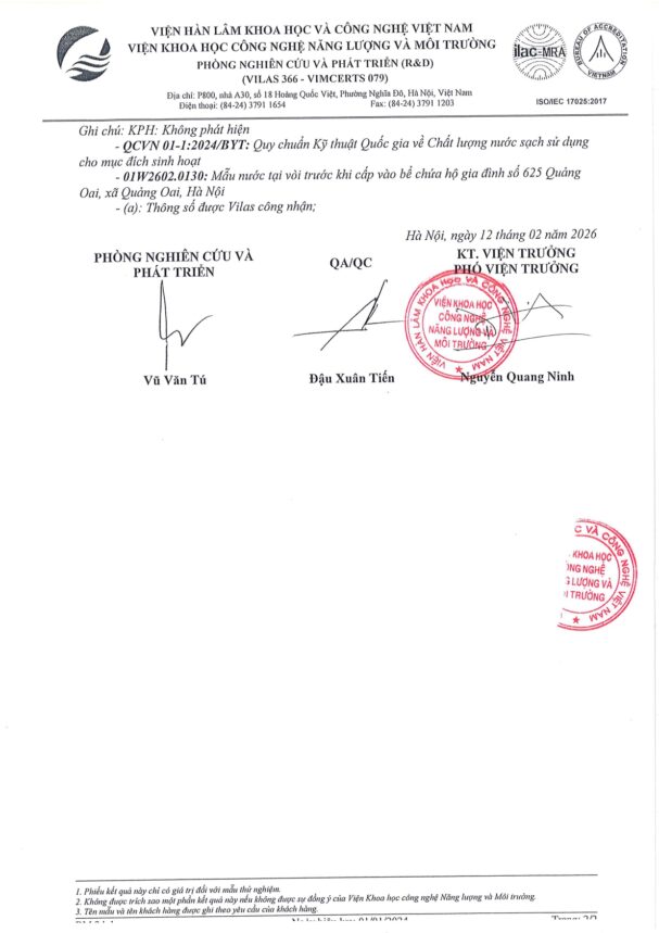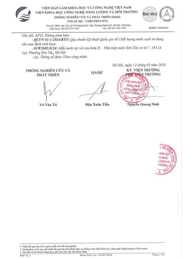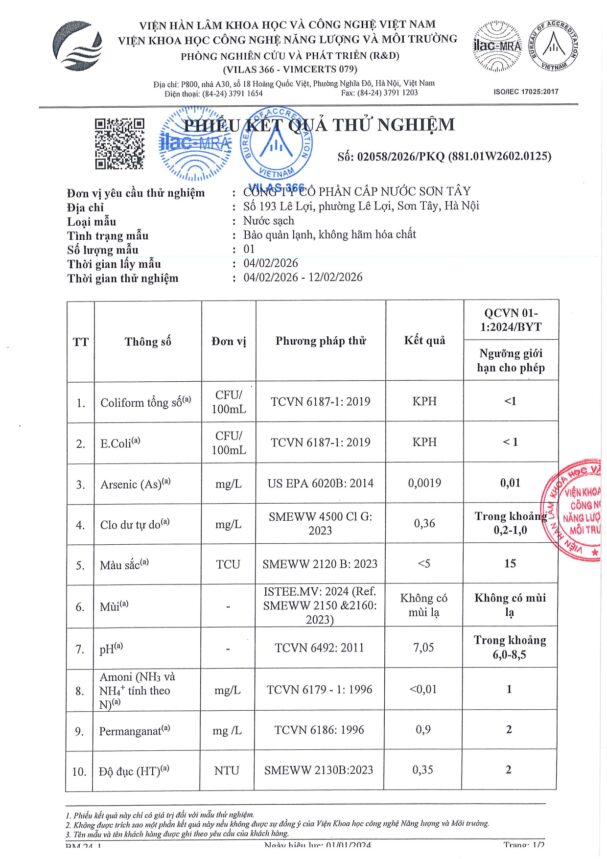 • Báo cáo xét nghiệm nước tháng 02 năm 2026