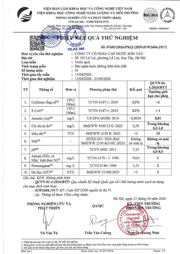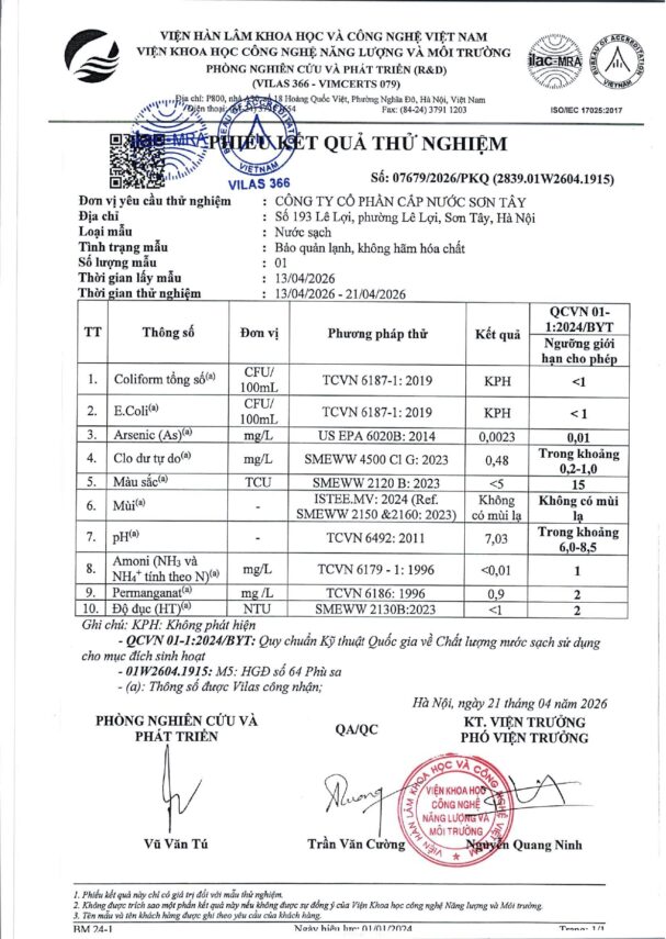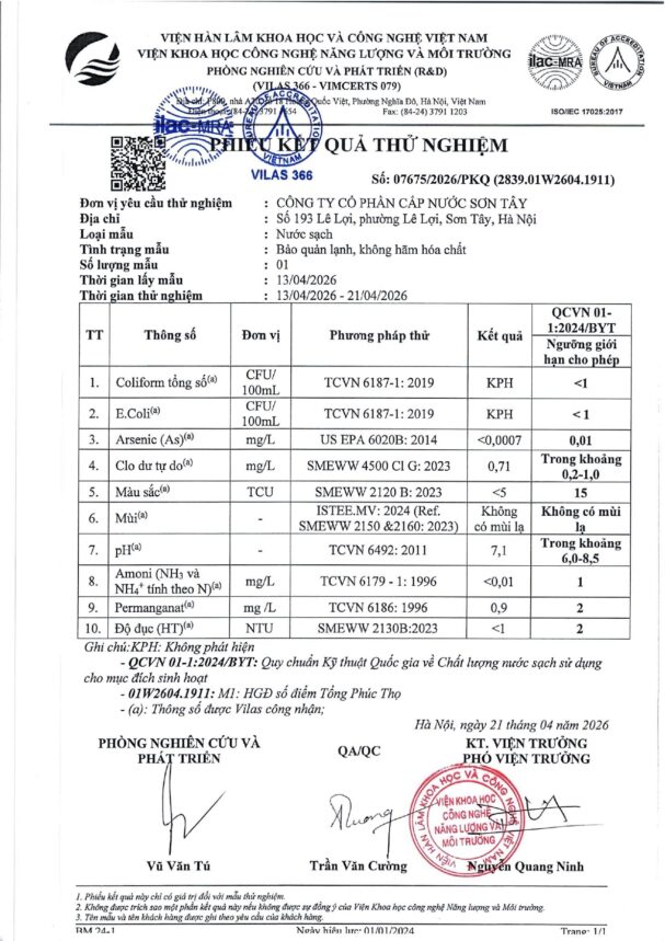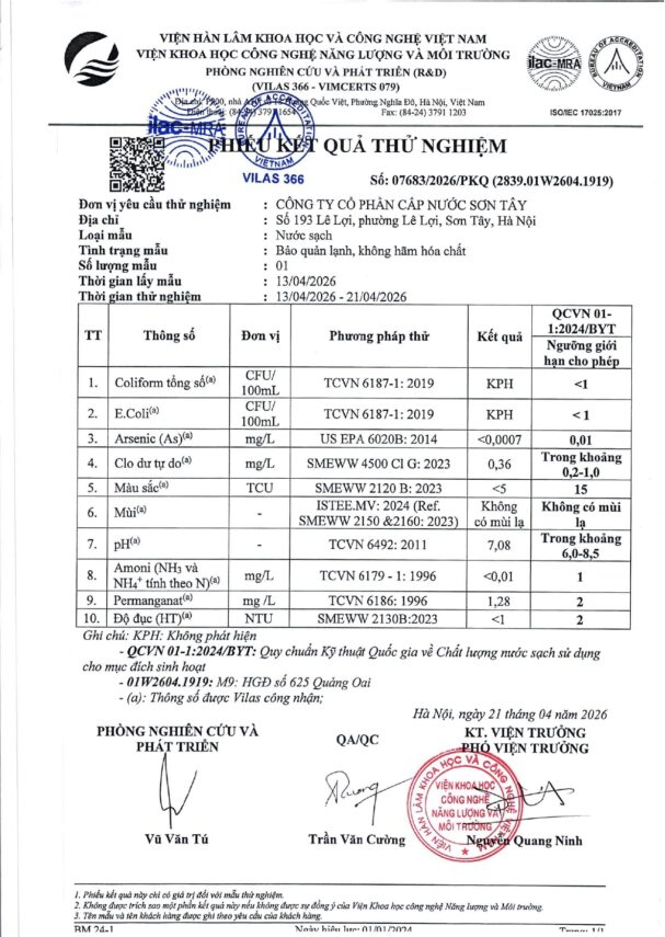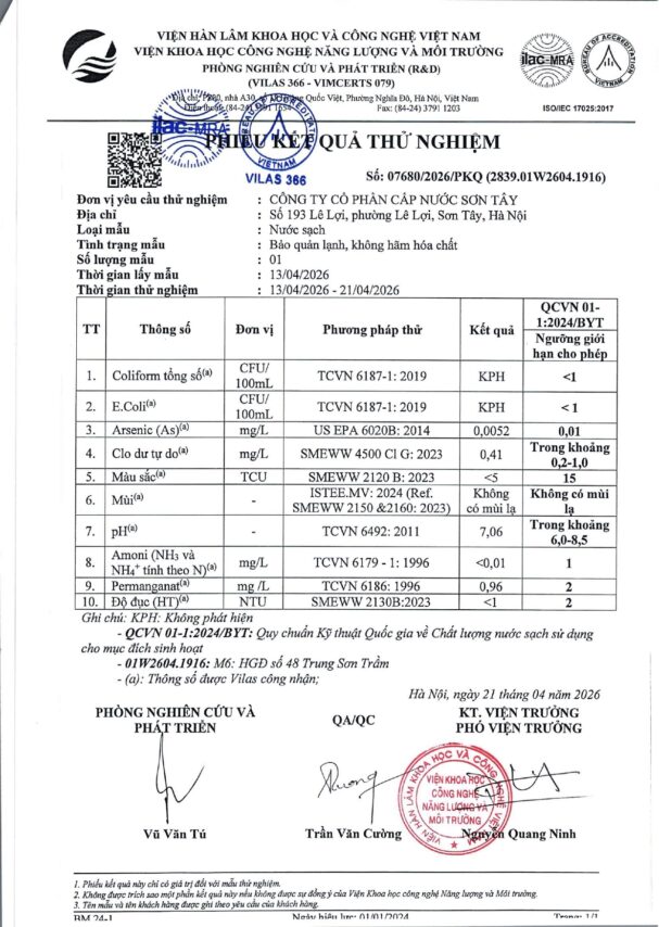 Báo cáo xét nghiệm nước tháng 04 năm 2026 Posted on 28 Tháng Tư, 2026 By Phạm Thanh In Chất lượng nước
