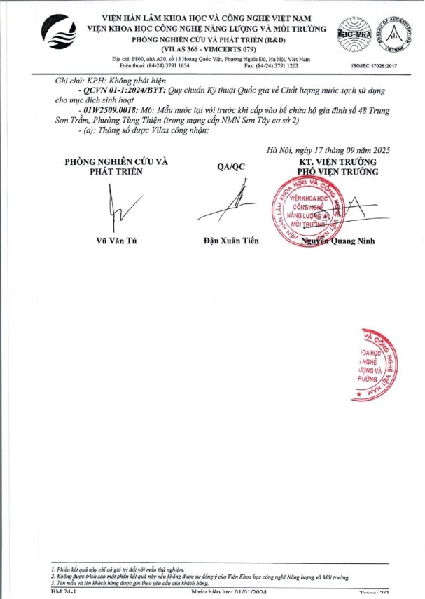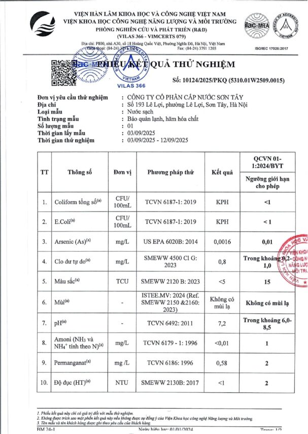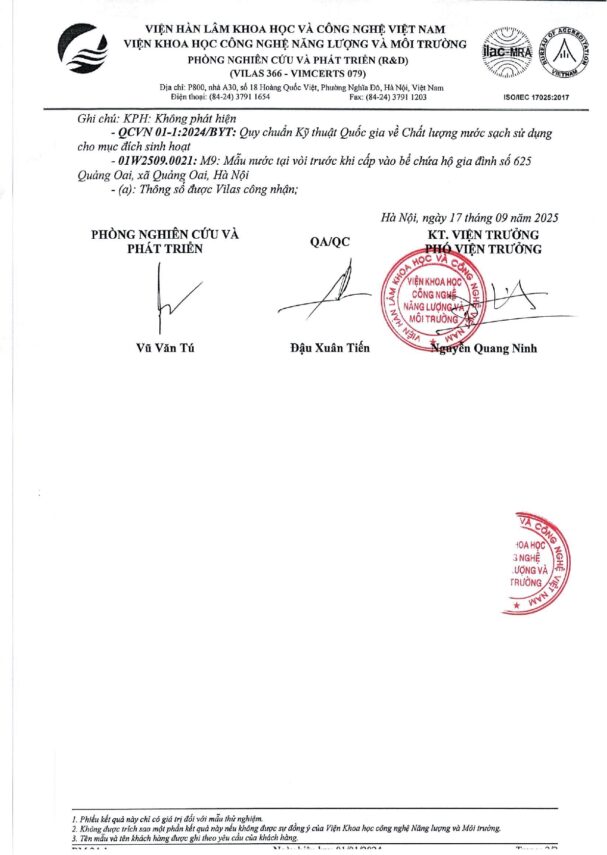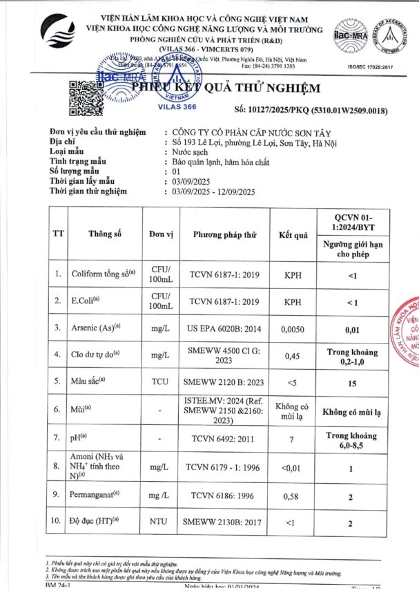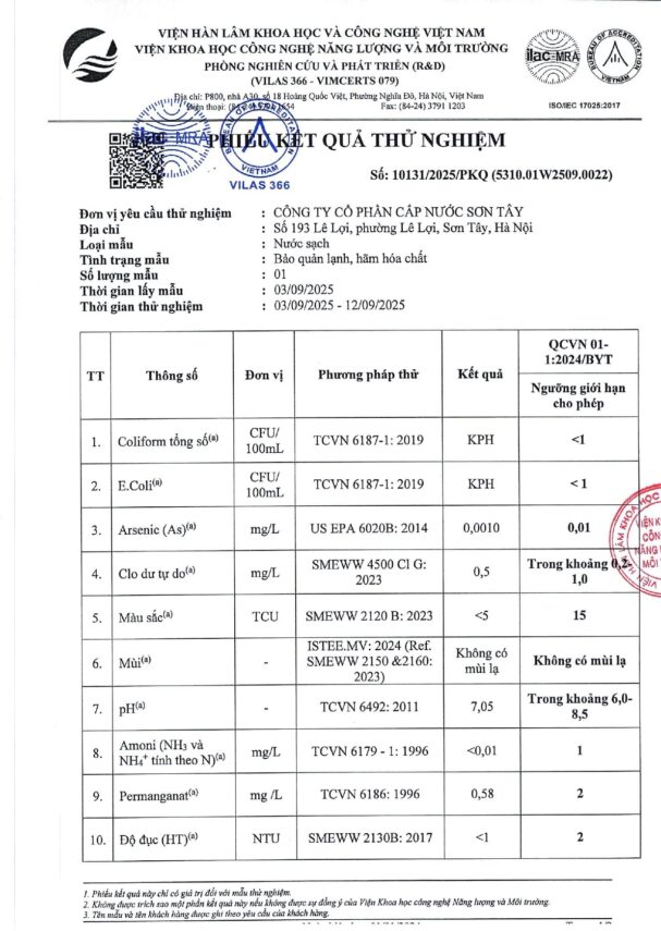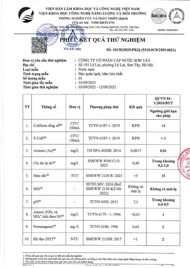 Báo cáo xét nghiệm nước tháng 09 năm 2025 Posted on 22 Tháng Chín, 2025 By Phạm Thanh In Chất lượng nước