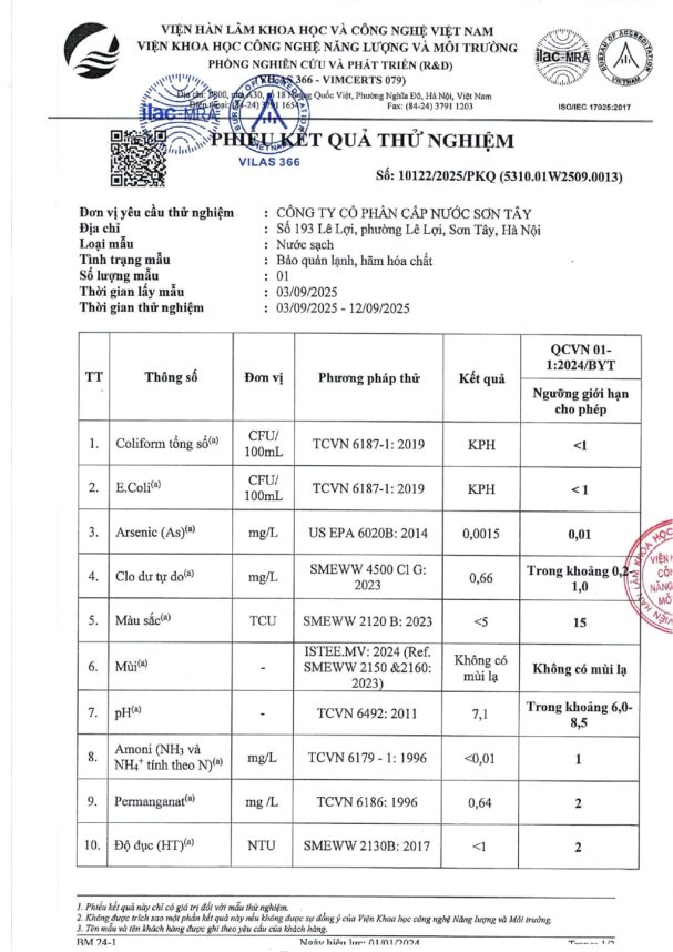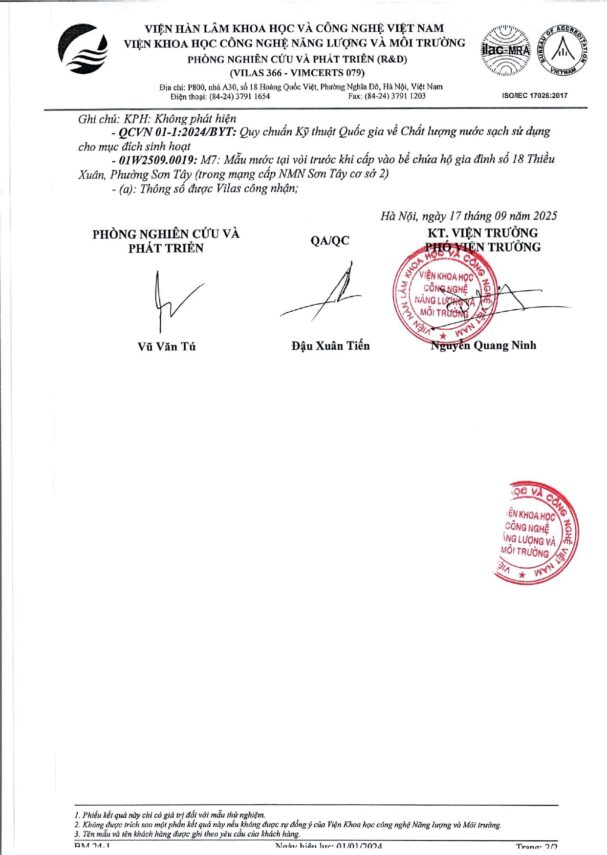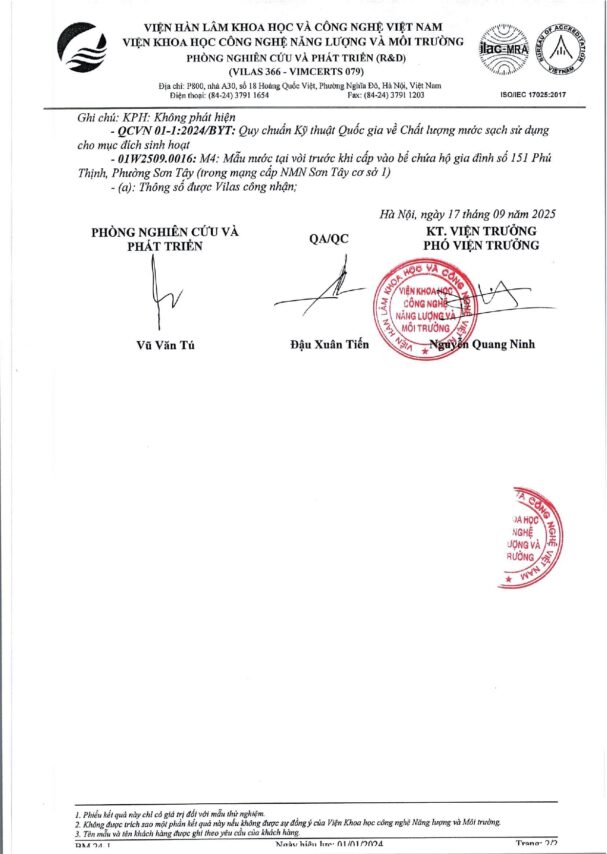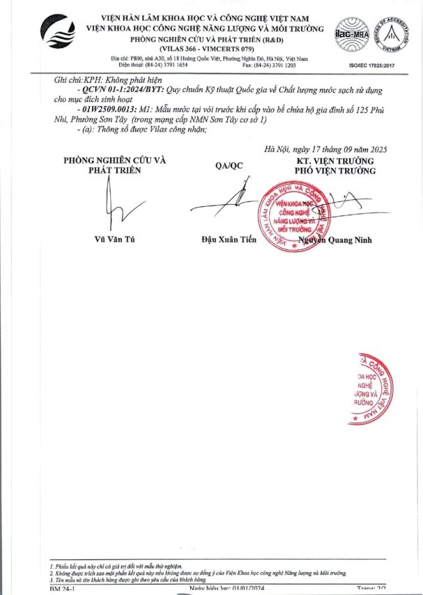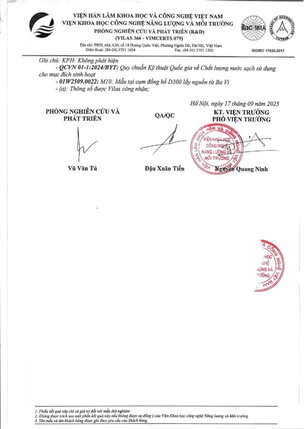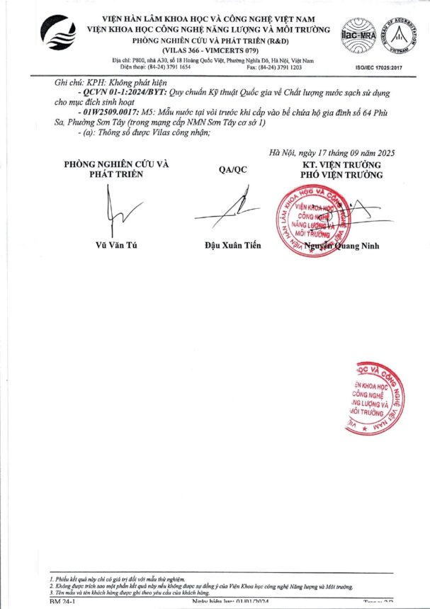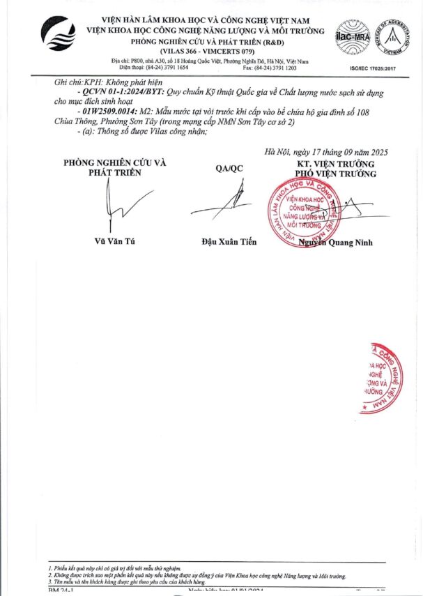 Báo cáo xét nghiệm nước tháng 09 năm 2025 Posted on 22 Tháng Chín, 2025 By Phạm Thanh In Chất lượng nước